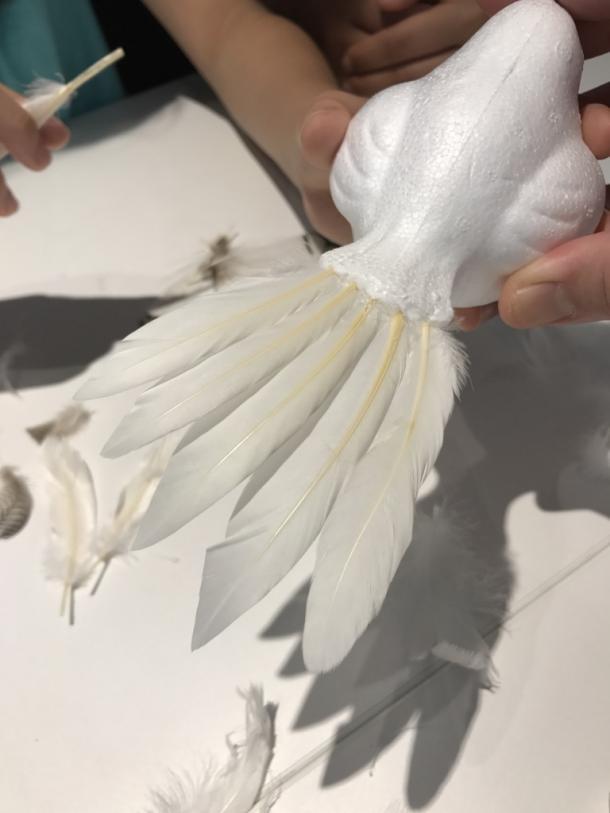 今回は、数多くの羽根を用いて小鳥を作るワークショップでしたが、実際作ってみると大変繊細な作業でした。細かい手仕事に加えて生命力のあるネリーさんの作品に、改めて敬意を表します。